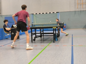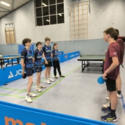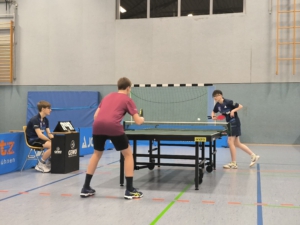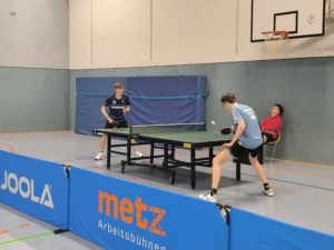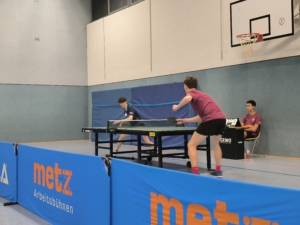 Knapp mit 4:6 mussten sich Michael, Sarah, Martin und Leon gegen das Team aus Burbach geschlagen geben. Leider lag man bereits nach den Doppeln 0:2 zurück. Dieser Rückstand konnte im Verlauf des Spiels nicht mehr aufgeholt werden. Auch wenn es letztendlich nicht zu einem Punktgewinn gereicht hat, gab es besonders im vorderen Paarkreuz sehr gute Spiele zu sehen. Alle vier Spiele wurden erst im 5. Satz entschieden, je zwei für jedes Team. Dabei boten Michael und Sarah sehr gute Leistungen und gingen je einmal als Sieger/in vom Tisch. Auch Martin und Leon waren im hinteren Paarkreuz je einmal erfolgreich.