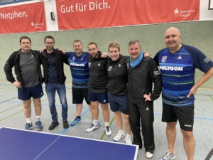 Die 3:0-Führung nach den Doppeln war also keine Selbstverständlichkeit – im Gegenteil eine Seltenheit. Markus und Jessi sowie Ferenc und Matze siegten jeweils relativ problemlos 3:0. Frank und Samet mussten einen Satz mit 7:11 verloren geben.