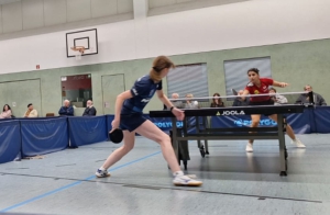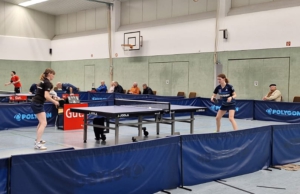 Eine 3:7 Niederlage gab es für das Damen-Team gegen die Mannschaft aus Düsseldorf. Leider traten die Gäste erstmals in stärkster Aufstellung an. Nach dem zwischenzeitlichen 2:2 konnte im Anschluss nur noch Martina mit ihrem zweiten Einzelsieg punkten. Im hinteren Paarkreuz bereiteten die beiden Material-Spielerinnen leider große Probleme.