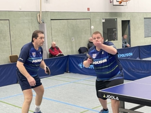 Damit war der Widerstand der Bensberger gebrochen. Im Spiel von Markus wurde es durch den gegnerischen Spieler und „seinen“ Unparteiischen zeitweise zwar ziemlich hektisch, weil die beiden Bedarf hatten, über die Aufschläge von Markus zu diskutieren. Letztlich konnten sie ihn aber nur im dritten Satz so weit aus der Ruhe bringen, dass er den mit 9:11 seinem Gegner überlassen musste. Ferenc und Matthias, nach den Erfolgen in den vergangenen Spielen beide mit deutlich aufsteigender Form, machten dann den Sack zu.