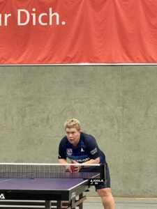 Das war ein hart erkämpfter Sieg! Der TTC Bensberg trat erst zum zweiten Mal in dieser Saison mit dem Spitzenspieler George Downing an, wollte das Spiel unbedingt gewinnen. So legten sie mit rasantem, schnellem Spiel auch los. Nur Markus und Jessica konnten ihr Doppel gewinnen. Ferenc und Matthias verloren 0:3, Samet und Gabriel nach großem Kampf knapp im Fünften.