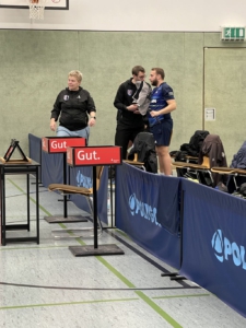 Im vorderen Paarkreuz zeigten die beiden Spitzenbretter dann ihre Klasse. Sowohl Jessica (gegen Marc Hecht) als auch George Downing (gegen Marcus) ließen ihren Gegnern mit klaren 3:0-Siegen keine Chance. Drei Einzelsiege von Ferenc, Matthias und Samet brachten uns aber erstmals in Front – und nach der Niederlage von Gabriel die knappe 5:4 Halbzeitführung. Es folgte die Klassevorstellung von Jessica gegen die George Downing im Duell der beiden Einser. Es ging beim 8:11, 11:9, 11:6, 9:11 hin und her – bis schließlich zum glücklichen 11:9-Ende für Jessica.