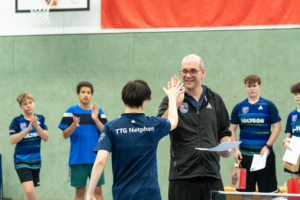 Am 20.12. fanden die gut besuchten Vereinsmeisterschaften im Nachwuchsbereich statt. Gespielt wurde auch hier mit einem Vorgabesystem entsprechend der jeweiligen TTR-Punkte. In 4 Gruppen qualifizierten sich die ersten beiden Spieler:innen für die Hauptrunde und in den durchaus knappen Begegnungen setzte sich auch diesmal Michael Rezer, vor Emilian Rebling und Leon Boersma, durch.