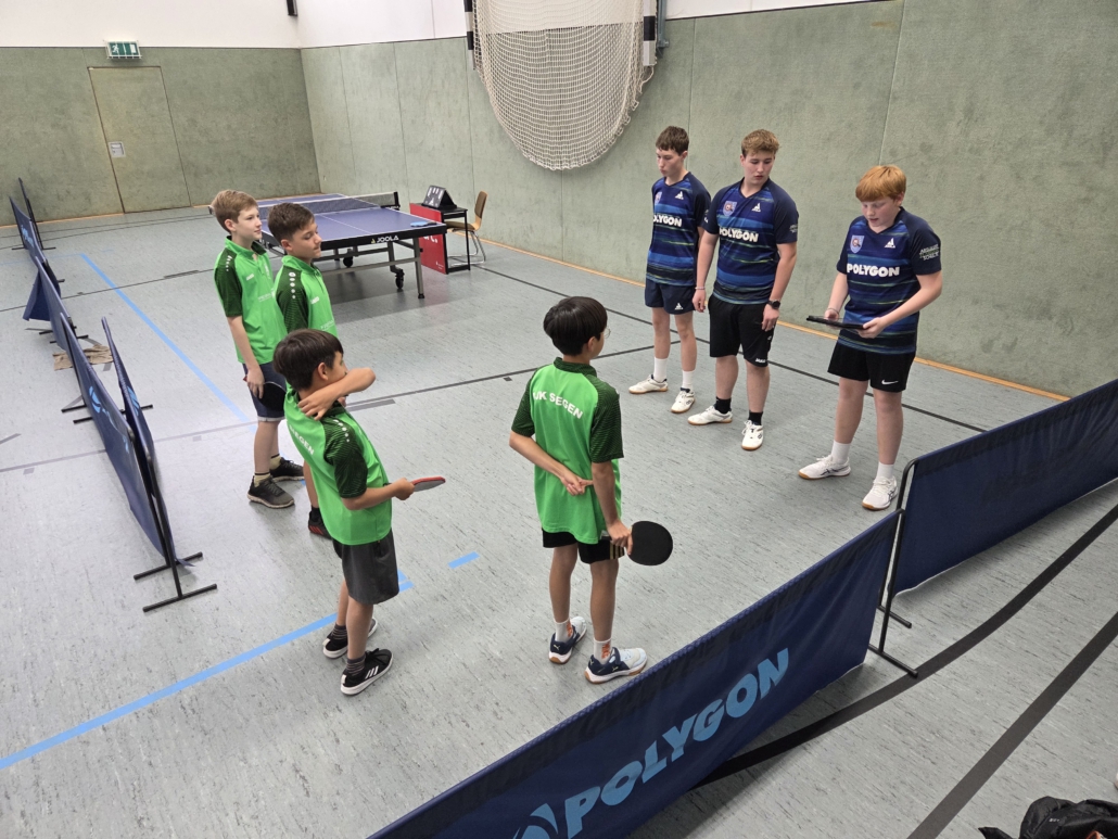 In einem spielerisch und kämpferisch beeindruckenden Meisterschaftsspiel gewannen Emilian, Jasper und Liam gegen die starken Siegener Gäste mit 6:4. Alle drei holten jeweils 2 Punkte – besonders hervorzuheben ist die Leistung von Emilian der im entscheidenden Einzel den gegnerischen Spitzenspieler im Entscheidungssatz bezwang.